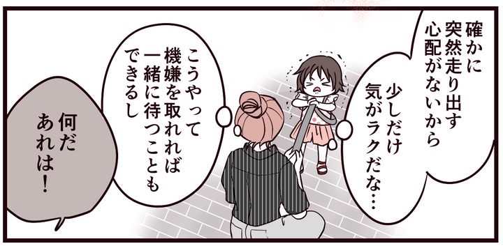 ただ、実際ハーネスをつけて外出すると……とてもラクでした。先日友人ミカに怒りをぶつけてしまいましたが、こうやって私がラクになると思いやっての言葉だったのかもしれないと思うと……申し訳ない気持ちになってきました。