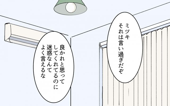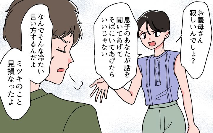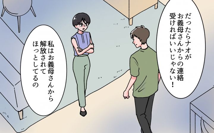 義母からの連絡に不満を抱えていた妻のミツキ。夫に相談しても軽くあしらわれ続けてきた。ある日、義母が嫁の悪口を言っているのを聞いてしまう。ミツキは我慢するのをやめ、義母に家には来ないよう宣言する。ショックを受けた義母は夫である息子に泣きついて…。夫から「嫁なんだから親を立てて」と言われた妻は大きな怒りを感じていた…。