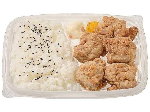 原材料高騰により、売価(税抜)580円から598円に変更します。口どけのよい衣とジューシーなお肉が楽しめる唐揚げ弁当です。