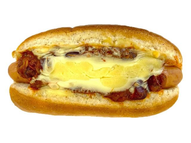 ジューシーなウィンナーに、香辛料の効いた具材感のあるチリソースとチーズをトッピングし焼き込んだドッグ
