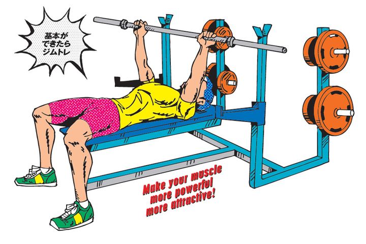 本来は大胸筋がメインですが、二の腕痩せに効果的な上腕三頭筋、三角筋にも効く筋トレです。初めは2~3キロくらいのダンベルを使用し、正しいフォームでできているかを意識しながら10回をこなせるようにしましょう。