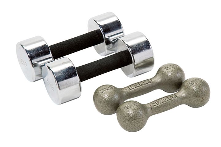 ダンベルには、おもりを着脱して重さを調節できるシャフト式ダンベルと、固定式ダンベルがあります。どちらを使うかは、好みで決めてかまいません。エクササイズに慣れてくるとダンベルの重さを徐々に上げていく必要がありますが、シャフト式ダンベルは、おもりを変えていくだけで対応できます。いっぽうの固定式ダンベルは、それぞれ重さのダンベルを追加しなければなりません。