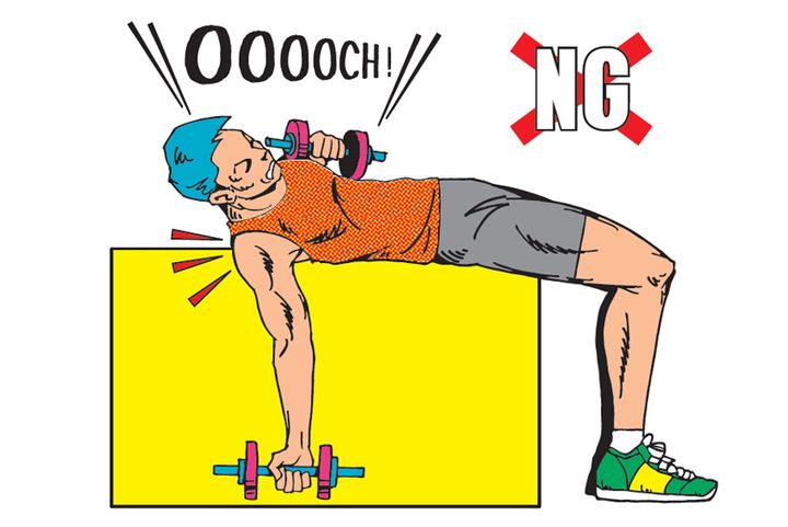 台を使用して筋トレする時は、あらかじめダンベルを持って、台に腰掛けます。そして、ダンベルを体の上に置くようにして仰向けになりましょう。仰向けになってからダンベルを持つと、肩などを痛めてしまう可能性があります。