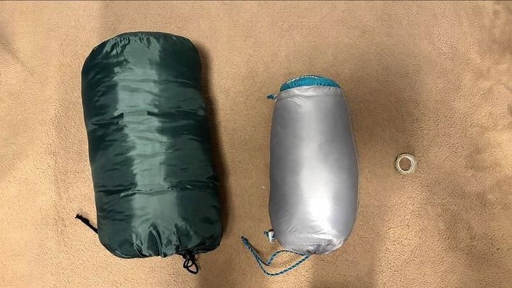 寝袋を比べてみると大きさでもこれほどの違いがあります。