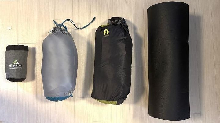 この4つは、先日山でテント泊に行ったときに使った寝具。