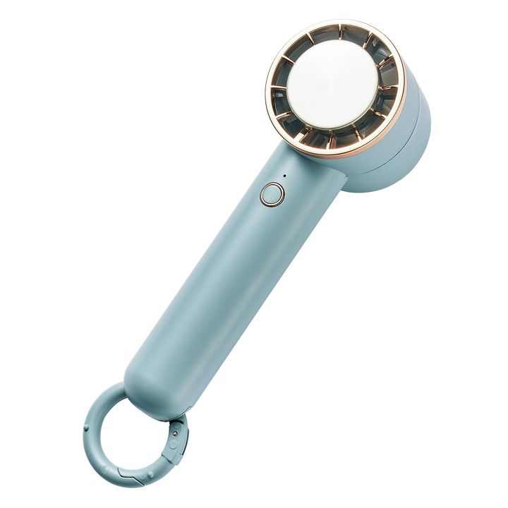今年大人気の冷却プレート付き。ペルチェ冷却機能ハンディファン カラビナ付き LCAF004 スモーキーブルー ¥2,728(ライフオンプロダクツ)