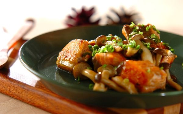 歯応えの良いホワイトシメジを使う炒めものです。真っ白なキノコと鮭の赤が、食卓を鮮やかに彩ります。ユズコショウの爽やかな風味と辛みが大人向け。肌寒い秋の夜に熱燗と一緒にいかがでしょうか。