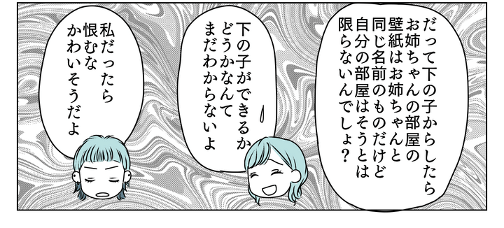 するとそこで、今まで黙っていた妹が口を開き「下の子が自分の名前の壁紙がないと知ったらかわいそう」と言いました。