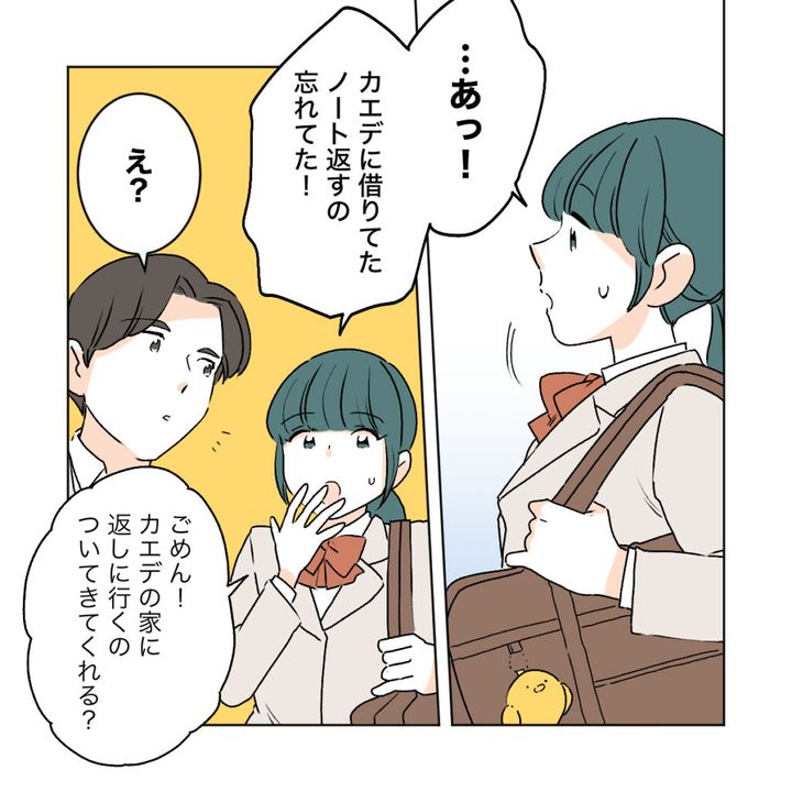 「・・あっ!カエデに借りたノート返すの忘れてた!」シズクの言葉に「え?」とワタルがたずねると、「ごめん!カエデの家に返しに行くのついてきてくれる?」とシズク。