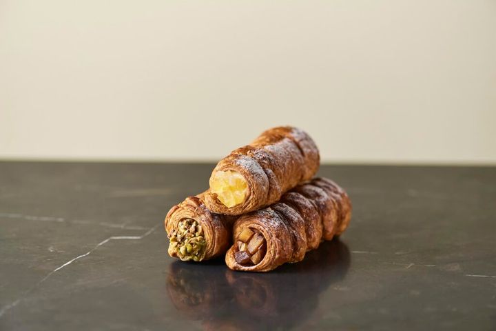 「カンノンチーニ」各¥1,404。カシスマロン、フワンボワーズピスタチオ、レモンレアチーズの3種のラインナップ。