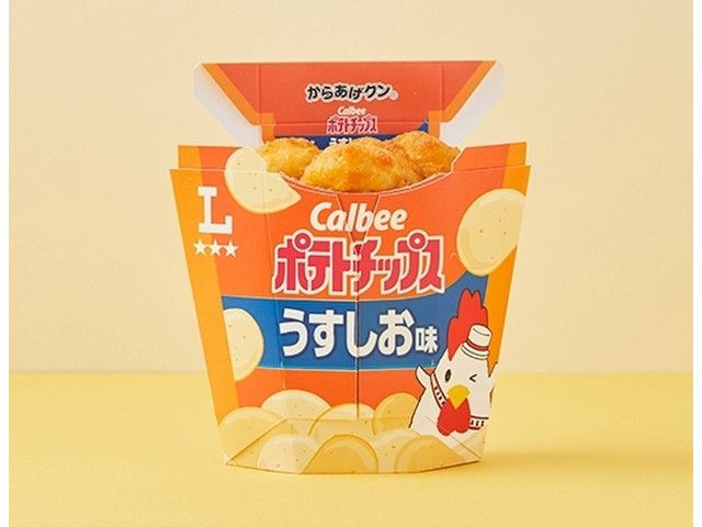 50周年を迎える、カルビーポテトチップス うすしお味をからあげクンでお祝い!ポテトチップスのじゃがいもの風味を演出した仕立て。