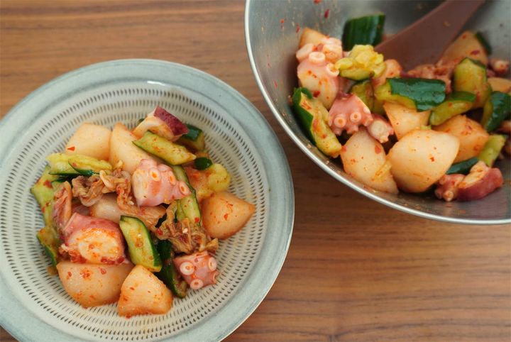 梨の甘味でご飯が進む♪「梨とタコのキムチあえ」