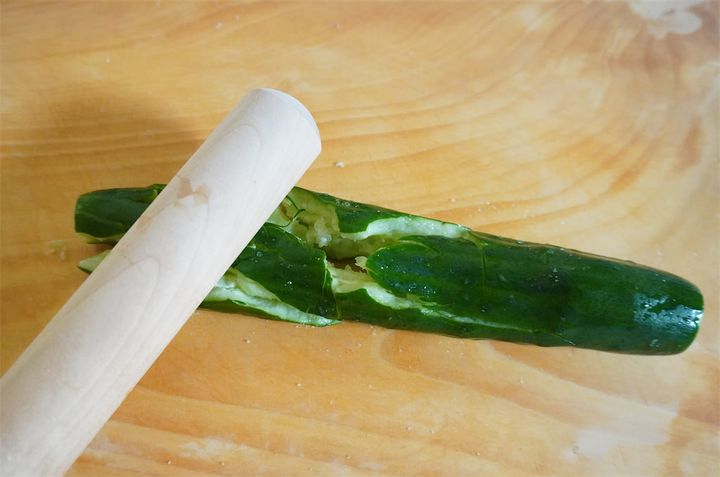 叩くことで、デコボコした断面から味がなじみやすくなるそうです♪