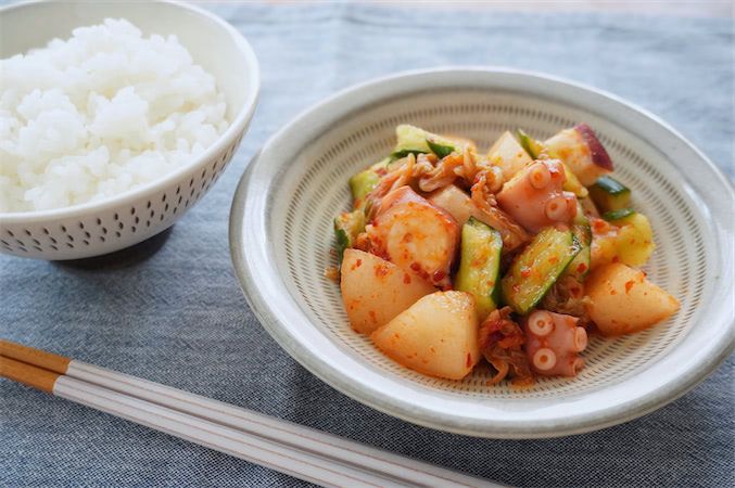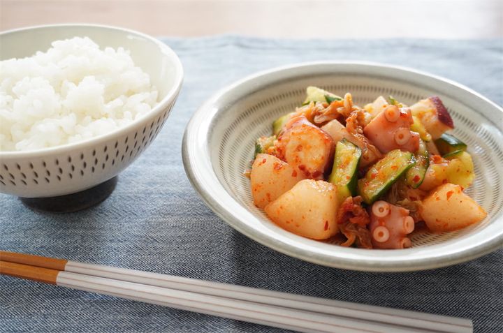 旨味が凝縮したピリ辛なタコがご飯によく合います。きゅうりのポリポリ食感もやみつきです~。
