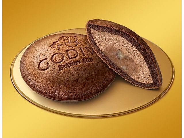ゴディバコラボレーション商品。マロンダイス入りの濃厚マロンペーストと、くちどけなめらかなチョコクリームとの2層仕立てのどらもっち。