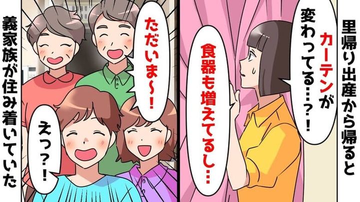 「カーテンが変わってる…?」里帰り出産から戻るとわが家に住み着く義家族!むーりー!非常識な義家族に制裁♡