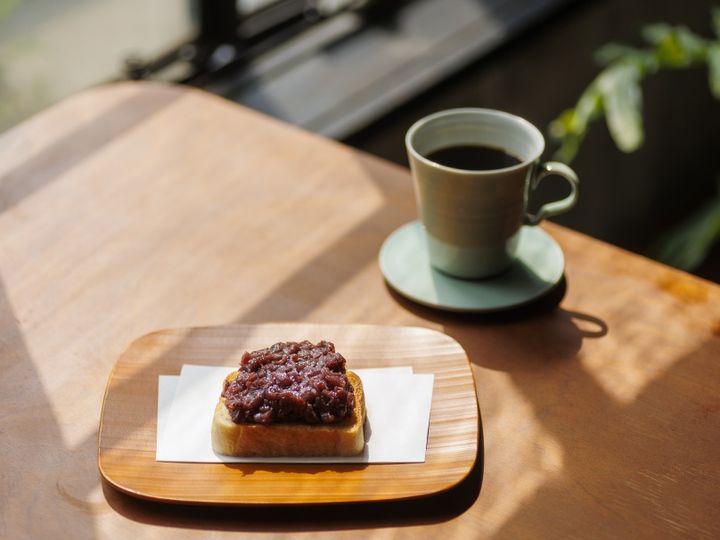 京都出身の作家・入江敦彦さんが考案した「あんバタトーストセット」1700円。ハード系に定評のある「HANAKAGO」のバケット生地の食パンに、創業110年を超える「中村製餡所」のあんこをたっぷりのせた贅沢な逸品です。