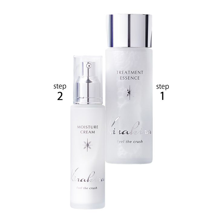 植物性シリカの微細な振動が、美容成分の浸透を、効率よくサポート。KIRAKIRAトリートメントエッセンス 120㎖ ¥17,800、同 モイスチュアクリー 50 ¥18,300ともにビューティフル シリカ)