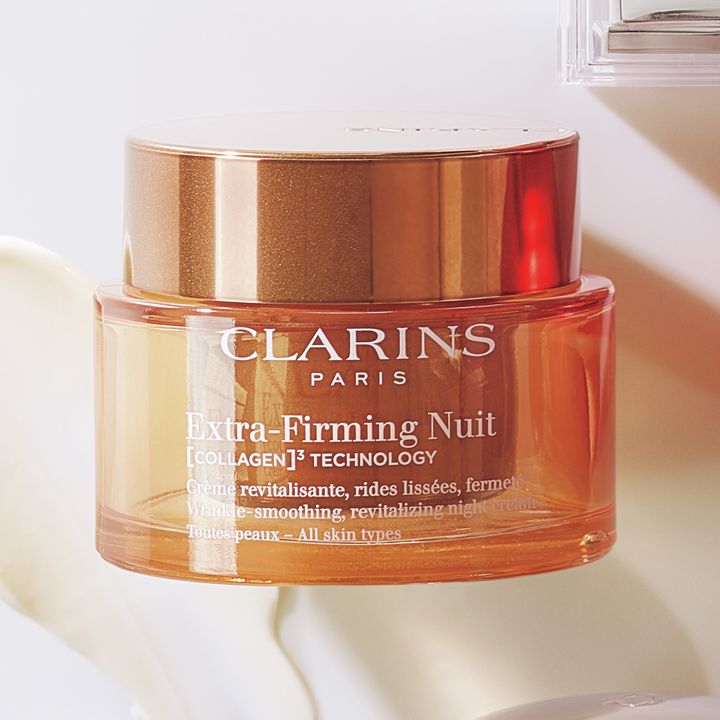 コラーゲンの増量に加え質、構造もリニューアル。内側から押し上げるような密度肌に。ファーミング EX ナイト クリーム N オールスキン 50㎖ ¥15,400(クラランス)