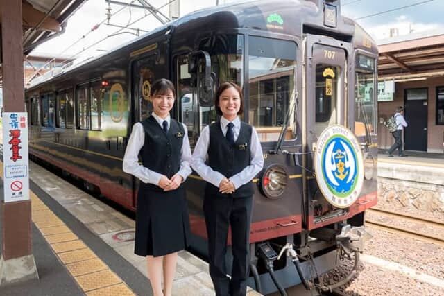 ▲アテンダントと「丹後くろまつ号」