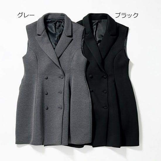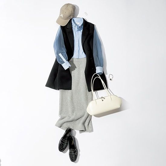 【1枚目】ジレ¥14,500(トラッツォドンナ)ニット¥10,780(カデュネ)パンツ¥22,000(アンクレイヴ/アンクレイヴ〈オンワード樫山〉)シューズ¥16,500(ダイアナ/ダイアナ 銀座本店)ピアス¥47,300(ウノアエレシルバーコレクション/ウノアエレ ジャパン)バッグ/スタイリスト私物【2枚目】ジレは色違い。Tシャツ¥14,300(ティッカ)スカート¥17,600(マイストラーダ)イヤリング¥2,860(ハクフルール/ロードス)バングル¥77,000(ウノアエレシルバーコレクション/ウノアエレ ジャパン)