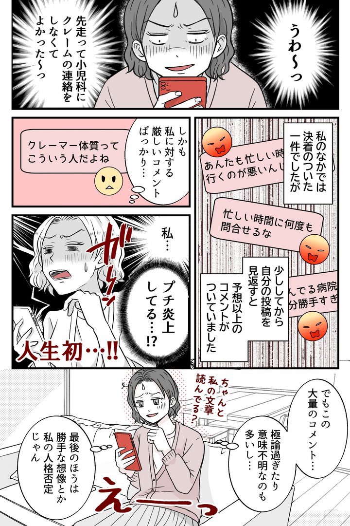 ネットでの私に対する批判の言葉にはショックを受けましたが、受診のタイミングや混雑するなかで対応する受付の大変さなど、配慮不足に気づくことができました。思いがけず、学びの多い貴重な経験になったと思います。