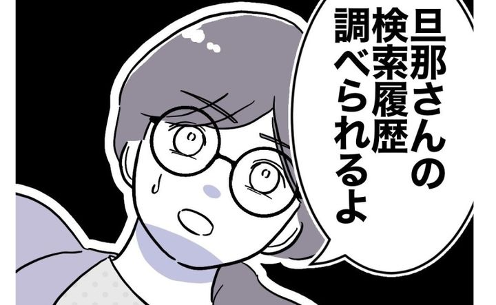 しばらく考えて、「パソコンからでも検索履歴を確認できるよ」とまいさんに助言。みっちゃんは、サトシさんが原さんと会っていたことを知っていますが、まいさんの気持ちを考えると、それ以上は何も言えないのでした。