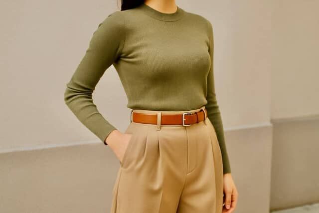ワイドパンツのゆったり感は、一歩間違えると“着られてる感”や野暮ったさにつながりがち。そこで意識したいのが、ウエスト位置の見せ方です。