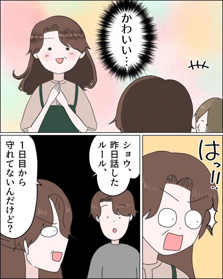 私が作った料理を息子と孫が喜んで食べている姿を見たら、つい、かわいいと目を細めてしまいましたが、ハッと我に返って「ショウ、昨日話したルール、1日目から守れてないんだけど?」と伝えました。