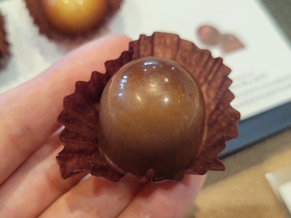 ベルギーの伝統的なクッキー・スペキュロスのプラリネとなめらかなキャラメルを合わせたまろやかな味わい。ほどよくシナモンが香り、食感も楽しい一粒です。