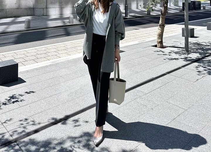 2. 着心地とキレイ見えを両立。オフィスで映える秋の美脚パンツコーデ【40代の毎日コーデ】