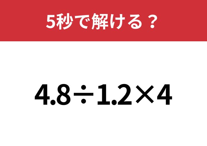 小数の計算はミスしがちかも?「4.8÷1.2×4」5秒で解ける?