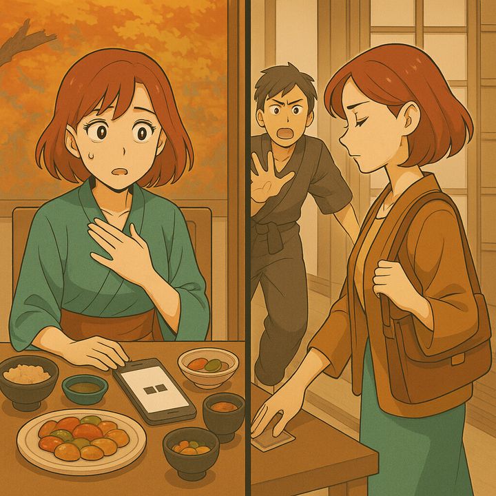蓮と付き合って一年。私たちは記念日を祝うため、少し奮発して温泉旅館に来ていました。窓の外には燃えるような紅葉が広がり、テーブルには彩り豊かなお料理が並ぶ。