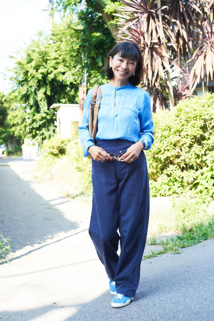 おしゃれ賢者のリアルな着こなしとワードローブを拝見する「1週間コーデ」。今週は葉山御用邸(神奈川県)の横でサロン「やまねこ」を主宰する山根佐枝さん(58歳/身長159.8cm)。海辺で暮らす山根さんのライフスタイルは、サーフボードを抱えてサーフィンを楽しむ日もあれば、着物でお茶の稽古に出かけることも。シーンに合わせた着こなしは、カラーやシルエットを整えるなど、おしゃれ上手な人のヒントが満載です。
