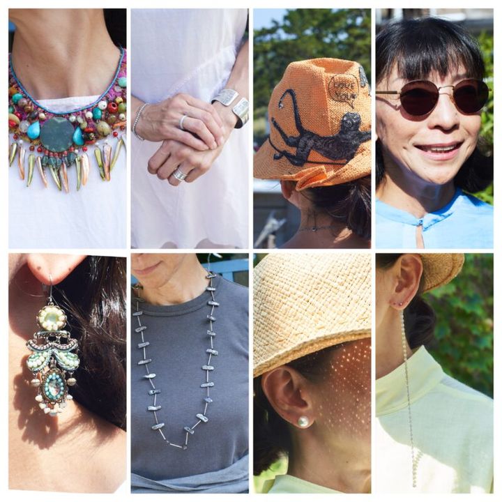 カラフルなネックレスやピアス、帽子 etc. シンプルな着こなしのスパイスに!