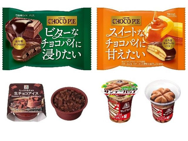 今週新発売のチョコレート味まとめ!『チョコパイ ほろ苦ダークカカオ』、『チョコパイ とろ甘キャラメルバター』など♪