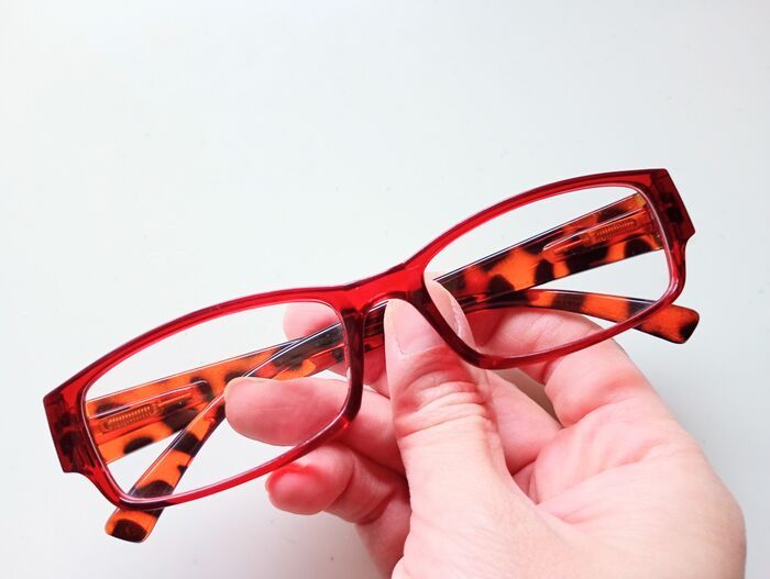 パソコン作業用のメガネも、フィルムフックで浮かせ収納にできますよ。