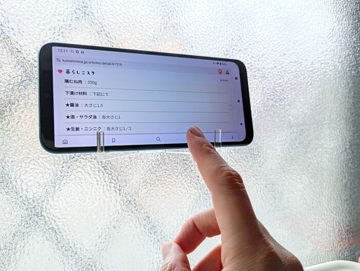 お料理中にレシピ動画をチェックしたいときは、スマホ用のフィルムフックがおすすめ!