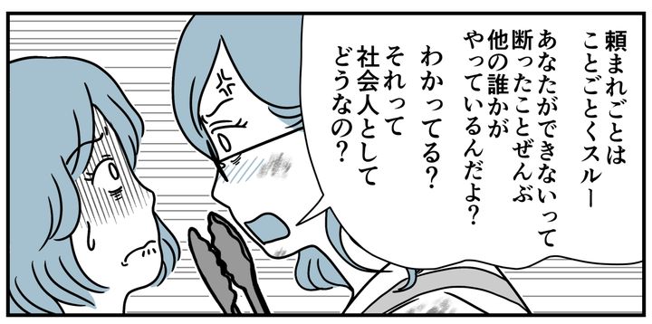 <やらない人>雑用係がブチ切れ「社会人としてありえないッ」私に説教?ムカつく~!【まんが】