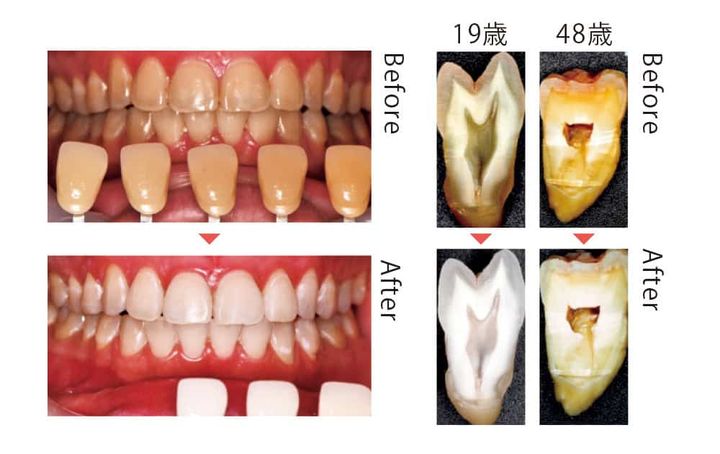 市販品や「セルフホワイトニング」は、表面の着色汚れを落とすだけなので限界が。歯科医院での「医療ホワイトニング」を選ぶのがベスト