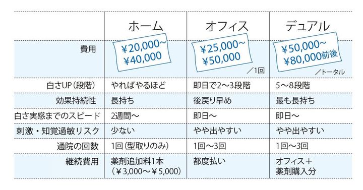 ◯ ¥20,000〜。色素を分解する基本の「医療ホワイトニング」は3種類