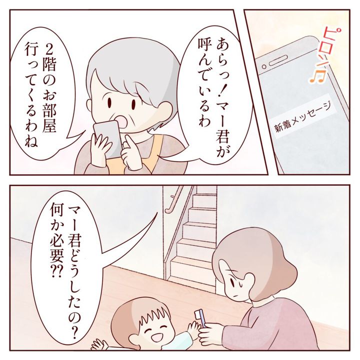 「あらっ!マー君が呼んでいるわ。2階のお部屋行ってくるわね」そう言うと、2階のマサキの部屋へ。「マー君どうしたの?何か必要??」と義母がたずねました。