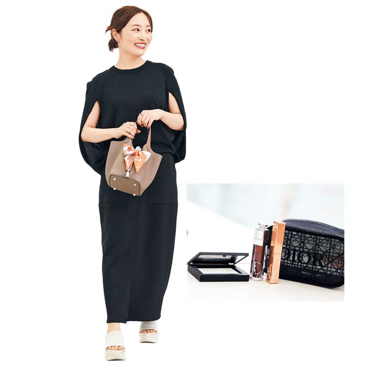 肌の色ムラを補整しつつヴェールをまとったような端正な肌にするジバンシイ プリズム・リーブル・トラベル01は持ち歩きしやすいミニサイズ。NARS アフターグロー センシュアルシャイン777にディオール アディクト リップグロウ212を重ね桃色唇誕生。