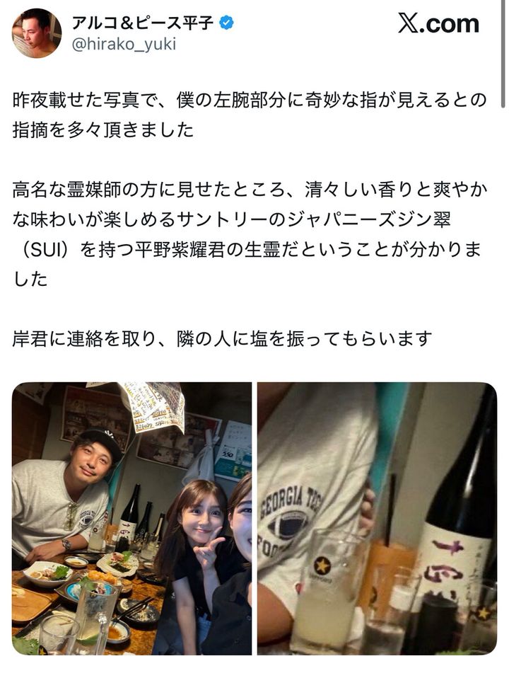 アルコ&ピース平子さんの公式X(@hirako_yuki)より引用