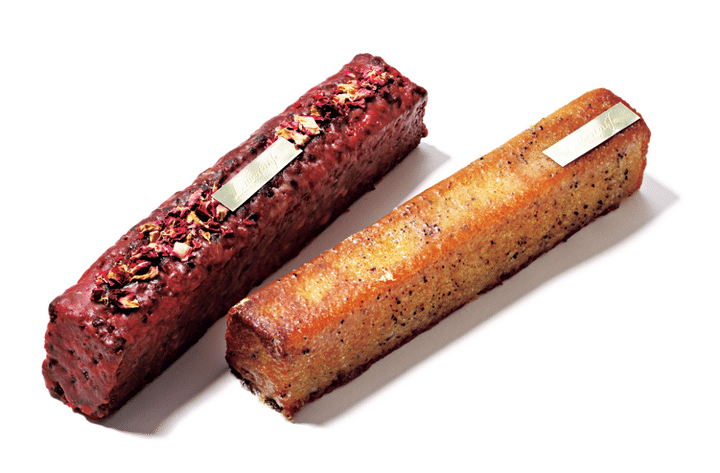 伝統と革新が共存するフランス菓子を創り出す、シェフパティシエ・森田一頼さんのケイク。トリュフとカルヴァドスが芳醇に香るスペシャリテや、バラのコンフィチュールやリキュールを使い、花びらを散りばめた一品など、唯一無二の味わいを楽しめるものばかり。 右から、ケイク オ トリュフ ノワール カルヴァドス¥2,400、ケイク フレーズ ア ラ ローズ¥2,200(ともに送料別途)