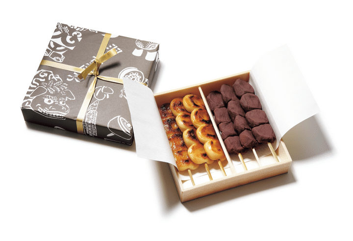 1819年、往来の人々が足を休める茶屋として創業以来、多くの文豪が訪れ、その作品にも登場したことがある老舗。屋号にもなっている名物は、もっちり滑らかな歯ざわりのお団子。蒸した米粉を丹念について、生醤油が香ばしい焼団子とこし餡で包んだ餡団子の2種類に仕上げています。江戸の街道で愛された、昔ながらの味はどこにお持ちしても安心。★6本入り折¥1,684(税込み)