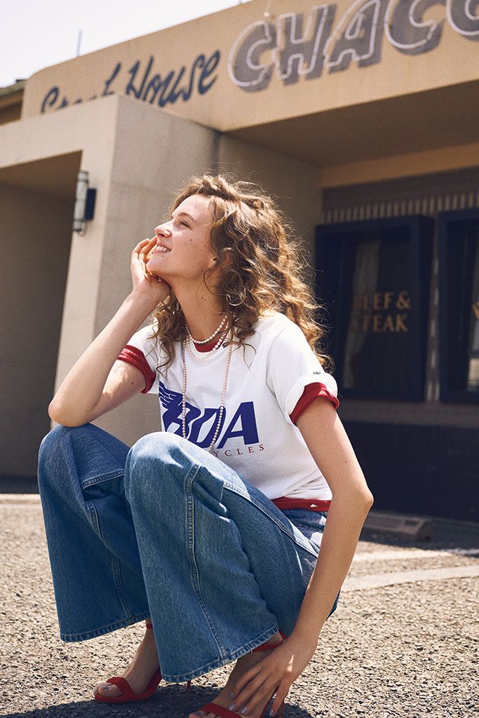 ワクワクした気分になるけれど、それだけだと少し気張って見えるアイテムたち。そんな気後れしがちな可愛い服をリアルなバランスに整える目的で、フラットな白T+デニムの王道セットが活躍。結果、わかりやすく雰囲気が変わることで、白T+デニムのレベルアップも図れる相乗効果も発揮。