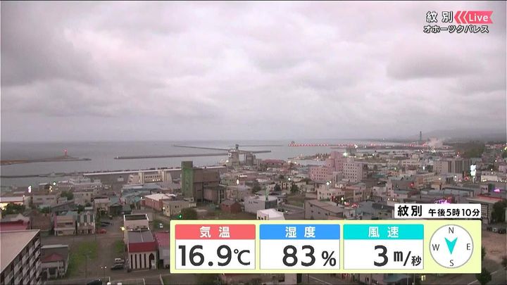 紋別では今夜からあす30日(火)朝もオホーツク海から湿った空気が流れ込み、雲が広がります。きょう29日(月)は24.5度まで気温が上がりましたが、あすは北風で18度と日中でも涼しくなりそうです。