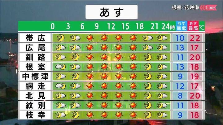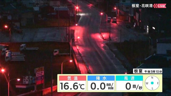 背景は29日午後5時ごろの根室花咲情報カメラ