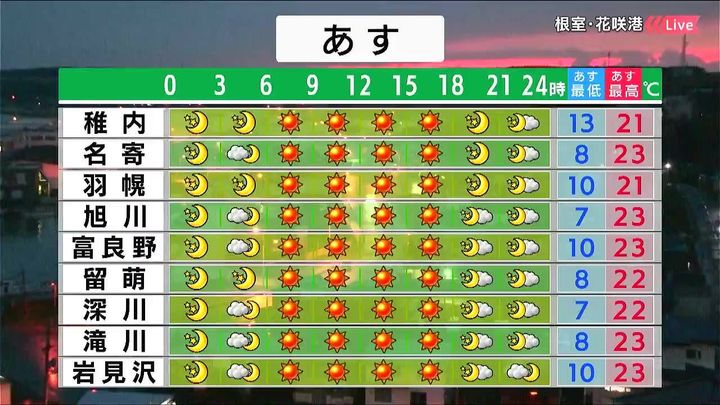 ・あすの札幌の朝昼晩の天気